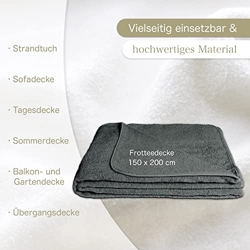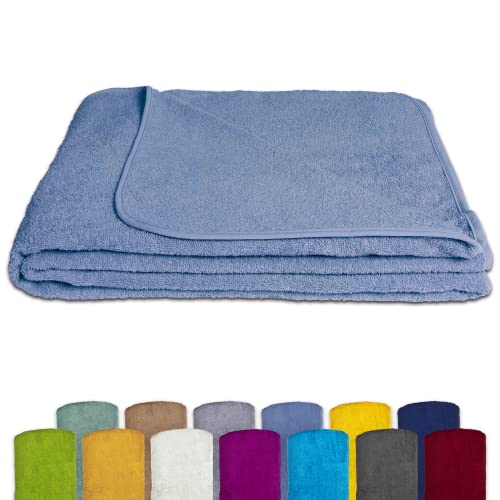 Frotteedecke aus 100% Baumwolle Walkfrottee 400g/m², Hochwertiges Ringspinngarn, umlaufendes Einfassband, abgerundete Ecken, Öko-Tex Standard 100 zertifiziert Prüf.Nr. 16.HTR.85098 Hohenstein HTTI, Waschbar bei 60°C und trocknergeeignet, Ideal für heisse Nächte, Stranddecke, Patientendecke