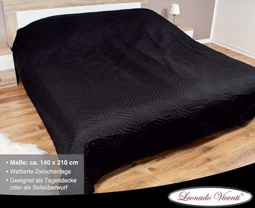 Leonado Vicenti XXL Bettüberwurf Klassiche Tagesdecke Steppdecke Sofaüberwurf wattiert und gesteppt, Farbe:Schwarz, Maße:140 x 200 cm
