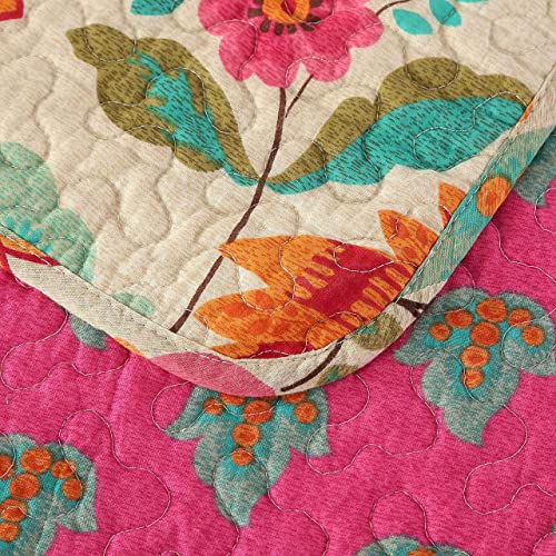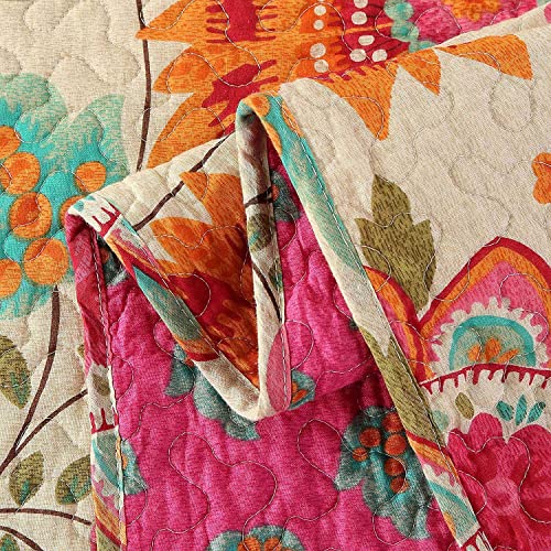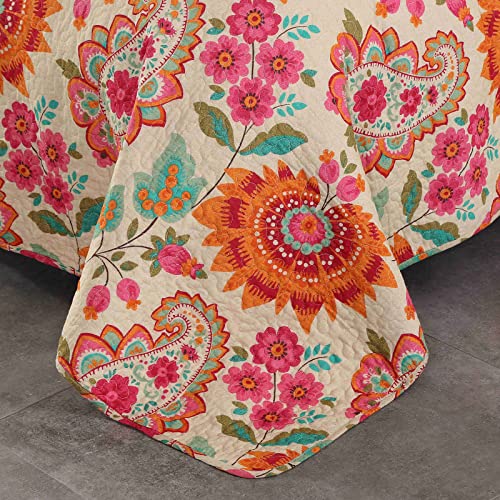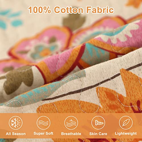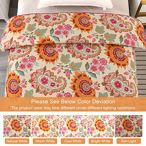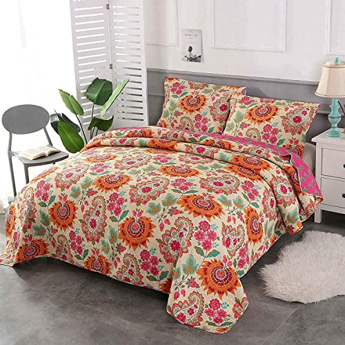 Qucover Tagesdecke Baumwolle 230×250 cm Bettüberwurf 220×240 Doppelbett Sofa Überwurf mit Paisley Sonnenblume Muster Gesteppte Decke in Vintage Stil